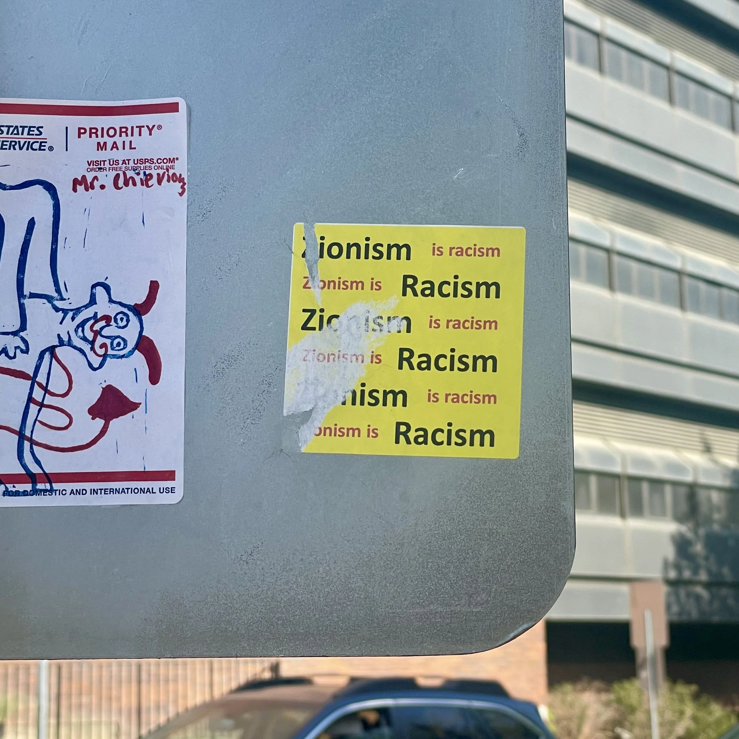 ‘Zionism is Racism’ sticker at the University of Pennsylvania, 2025, Julia Wald.